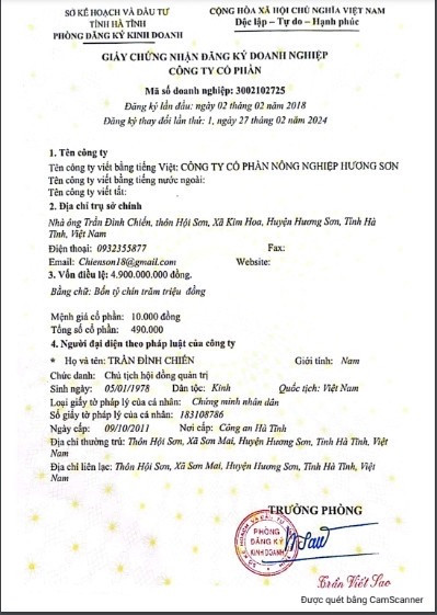 CÔNG TY CỔ PHẦN NÔNG NGHIỆP HƯƠNG SƠN